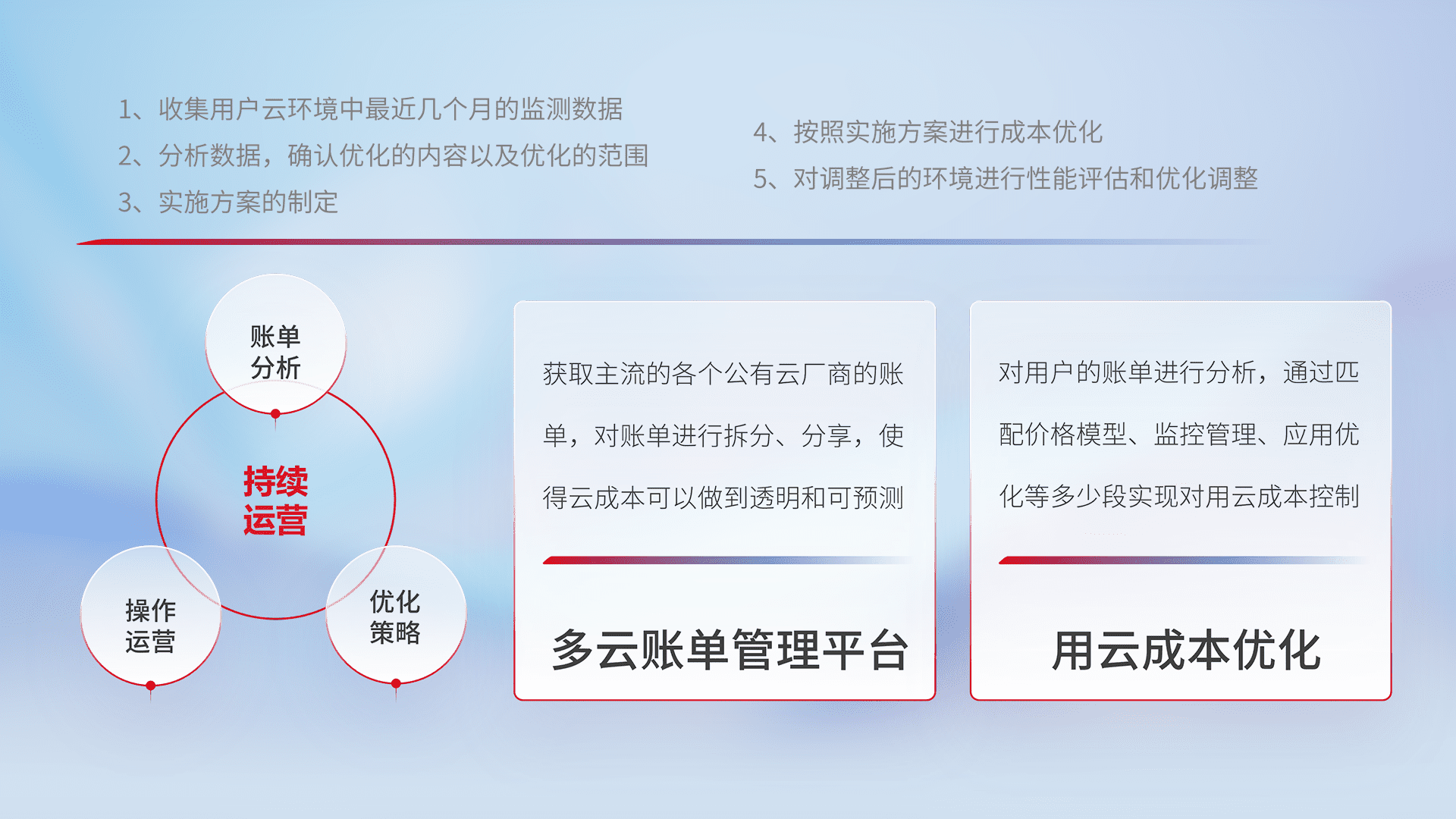 监控业务系统资源开销,,对资源的消耗精确计量,,,,实现费用的透明化管理,,,不断提升资源使用率,,调整资源购买方式,,,,降低资源费用成本,,用云成本可预测、、、、用云费用可优化,,云资源配额有据可依。。。。